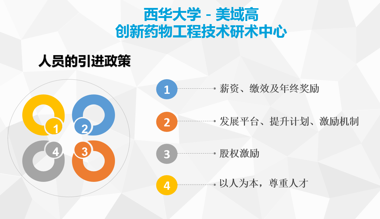 美域高與西華大學(xué)聯(lián)合組建創(chuàng)新藥物工程技術(shù)研究中心,以此為依托組建了20人左右的科研團(tuán)隊(duì)。研發(fā)團(tuán)隊(duì)核心成員以王春燕、劉治國(guó)等多位化學(xué)合成制藥專(zhuān)家為主,成員從事新藥與技術(shù)研究專(zhuān)業(yè)工作多年,具有豐富的藥品GMP管理知識(shí),扎實(shí)的技術(shù)基礎(chǔ)和項(xiàng)目管理經(jīng)驗(yàn),精通醫(yī)藥行業(yè)法律法規(guī),有強(qiáng)大的項(xiàng)目運(yùn)作、團(tuán)隊(duì)管理經(jīng)驗(yàn),對(duì)行業(yè)的發(fā)展現(xiàn)狀和前沿技術(shù)有深入的了解,承擔(dān)國(guó)家、省部級(jí)科研項(xiàng)目多項(xiàng),積累了豐富的藥物研究成果。